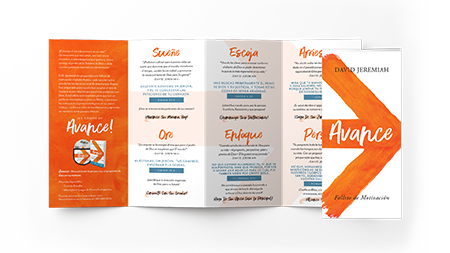 El Dr. Jeremiah ha preparado este folleto de motivación titulado Avance, cada sección cubre uno de los temas en su serie de enseñanzas Avance. Fue preparado para ayudarle a aceptar el reto de avanzar a una relación personal más poderosa con Dios. Este folleto está diseñado para que sea un perfecto marcapáginas para su Biblia, o para que las coloque en lugares estratégicos en su casa o trabajo, conforme trata de familiarizarse y aprender de memoria estos pasajes bíblicos.
